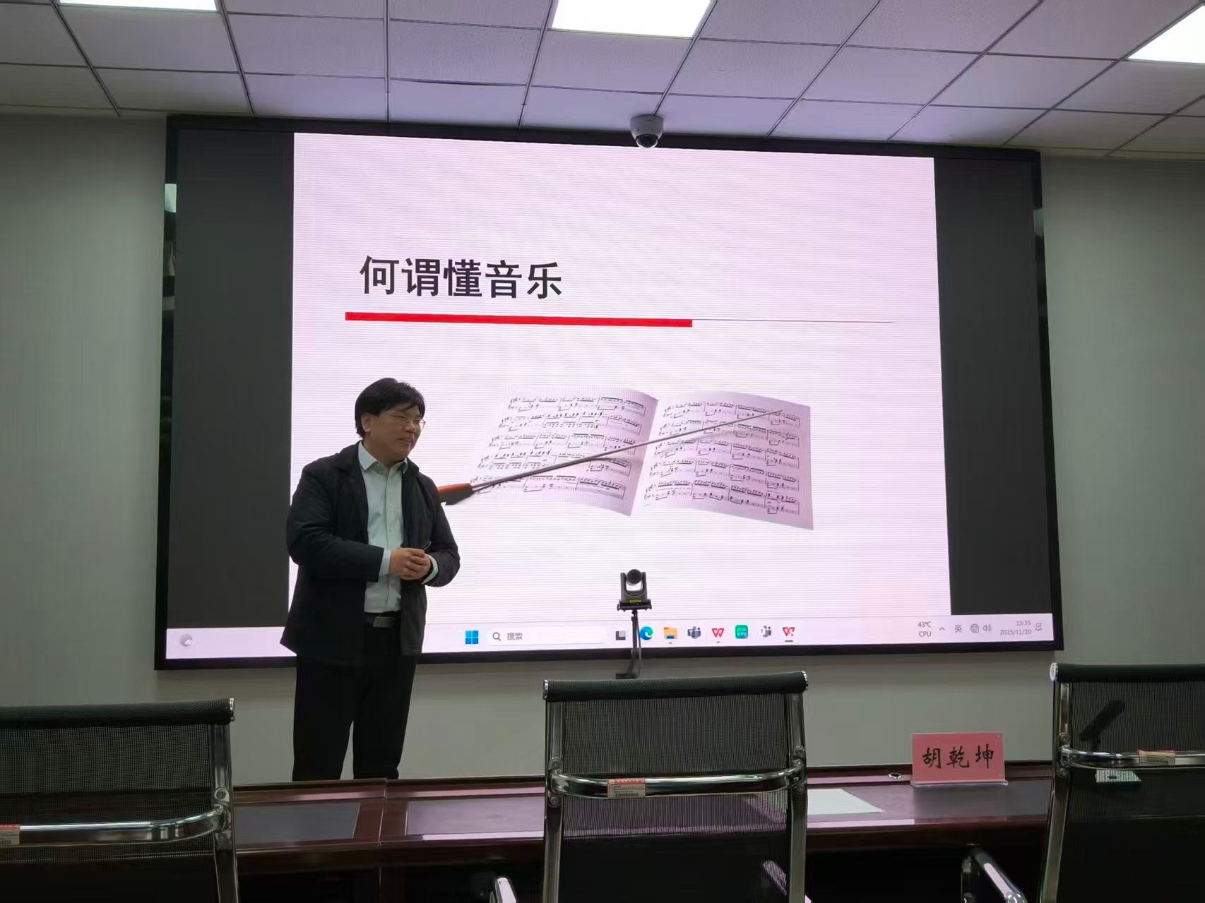 胡老师以 “音乐与其表现对象之间的关系” 为切入点,从音乐感知、情感共鸣、文化理解三个维度,用通俗语言解读 “懂音乐” 的内涵。他结合古典、民族、世界音乐片段,通过 “听旋律辨情绪”“析节奏知文化” 等互动环节,引导教职工感受音乐背后的故事与情感,现场气氛热烈。